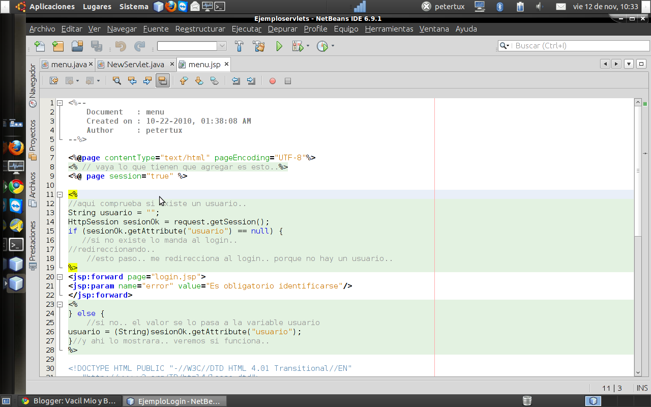Ya en la pagina jsp exportamos 3 paquetes de java para una para operar con fechas otra para instanciar objetos de fechas y la ultima es para aplicarle try cash al codigo.